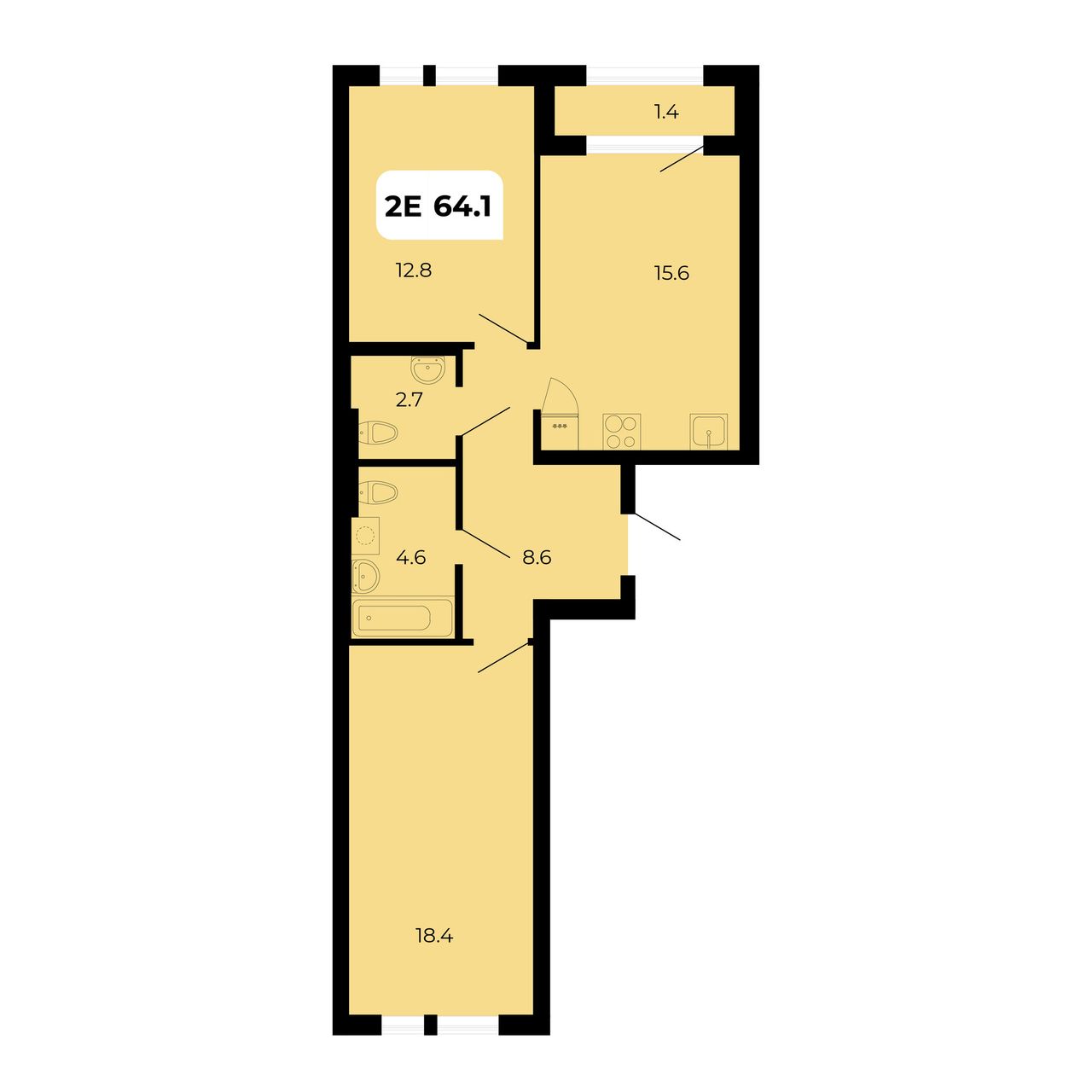 Общая площадь64,1 м²