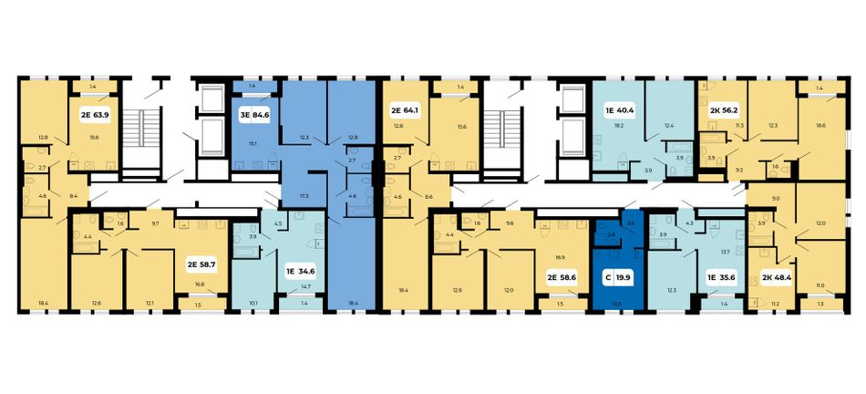 | 2-комн. | 54 - 72 м² | 9,6 - 12,9 млн ₽ |