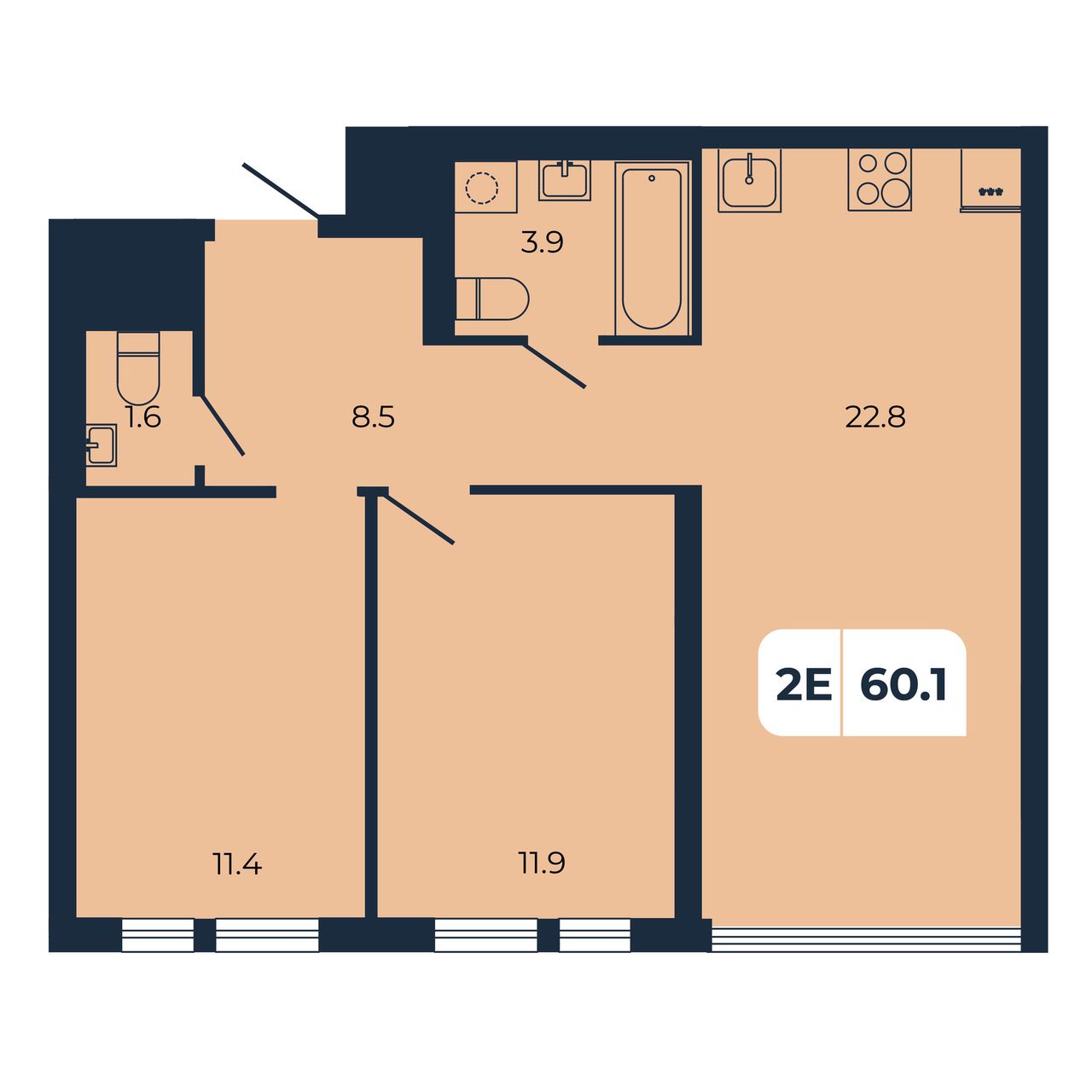 2-комнатная — 60,1 м² 1/17 эт. в Норд-Премьер