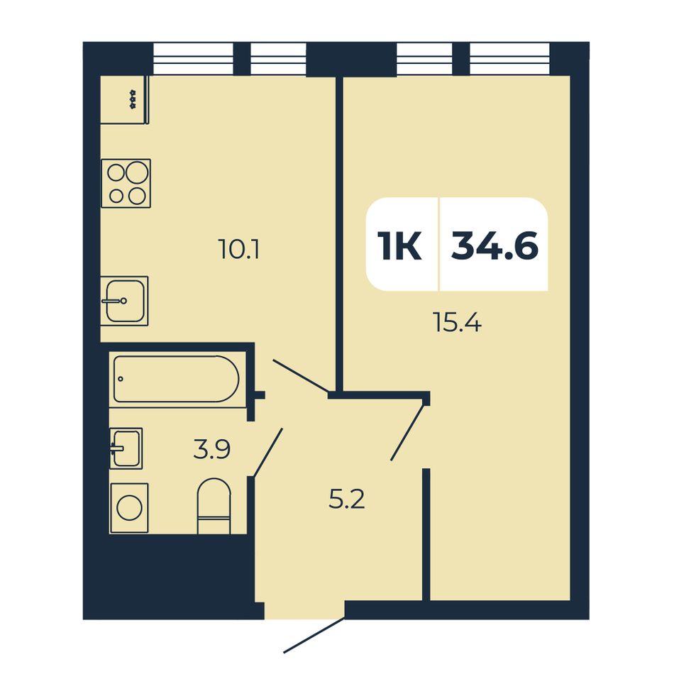Общая площадь34,6 м²
