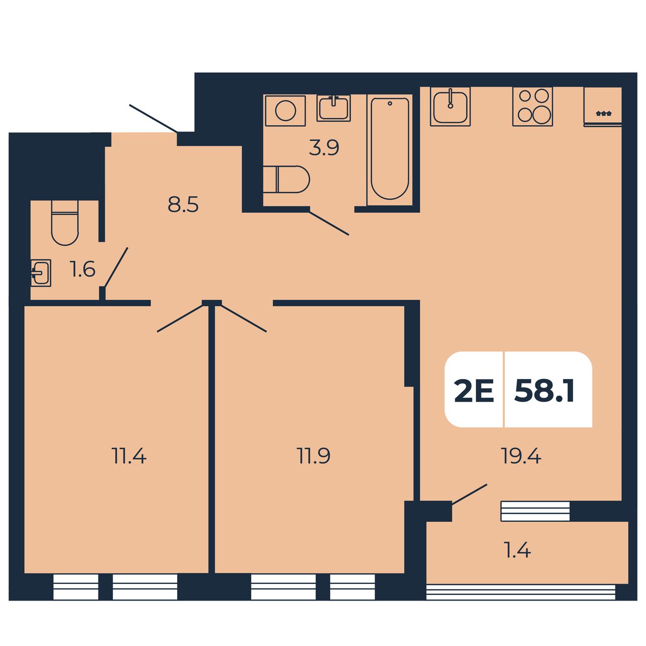 Общая площадь58,1 м²