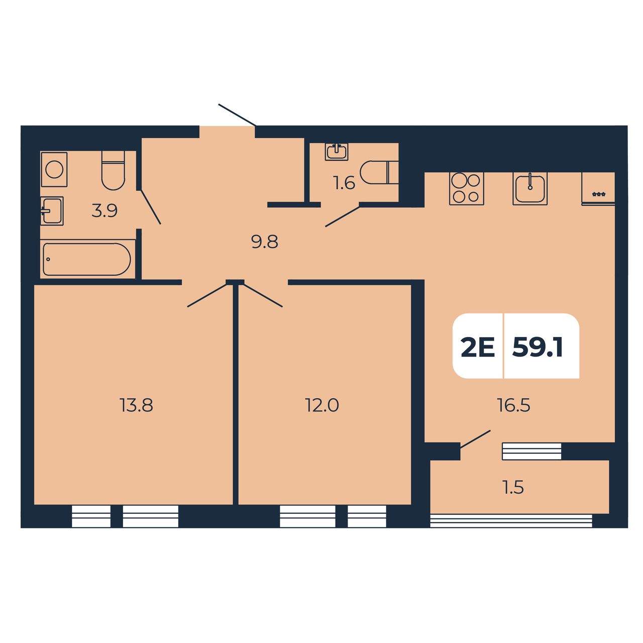 2-комнатная — 59,1 м² 17/17 эт. в Норд-Премьер