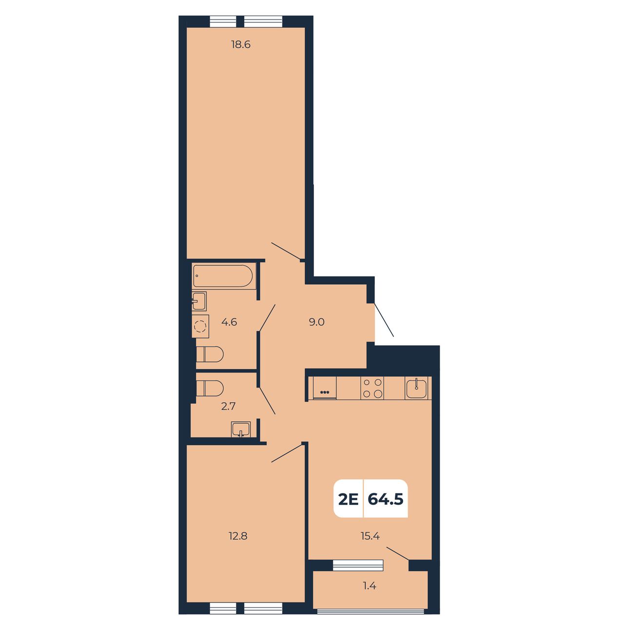 | 2-комн. | 64 - 72 м² | 8,9 - 10 млн ₽ |