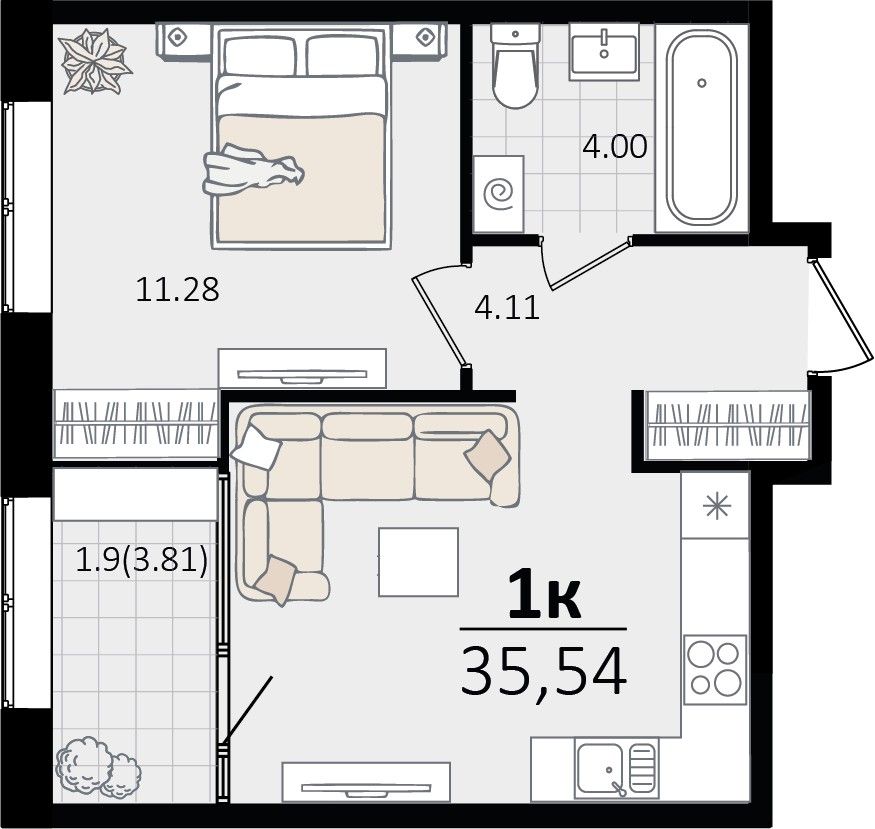 1-комнатная — 35,54 м² 7/18 эт. в Патрики