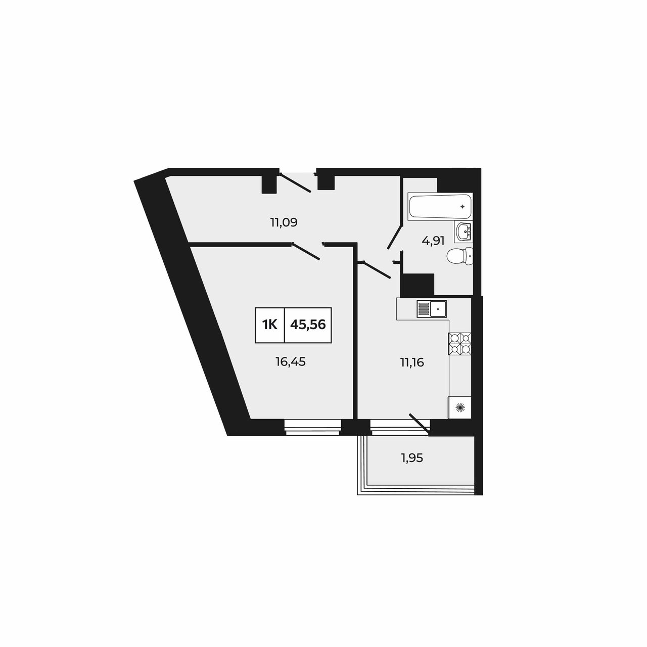 Жилая площадь16,45 м²