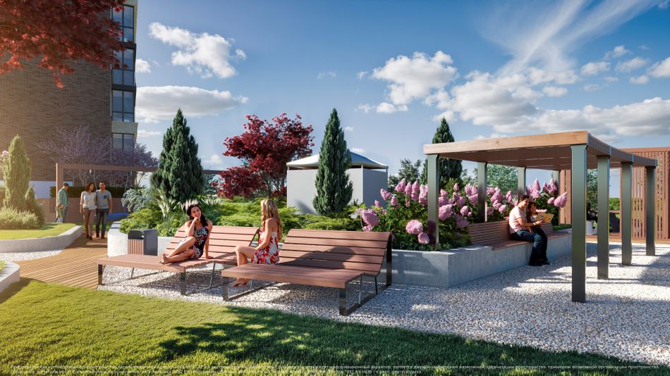 • Rеlах-hub на крыше 21 этажа с панорамным обзором 270°, зонами отдыха для взрослых и детей, кинотеатр под открытым небом