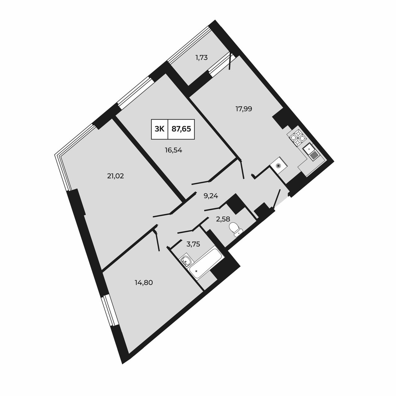 3-комнатная — 87,65 м² 14/30 эт. в Манхэттен 2.0