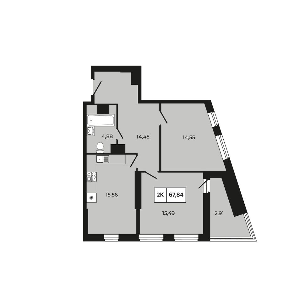 2-комнатная — 67,84 м² 16/30 эт. в Манхэттен 2.0
