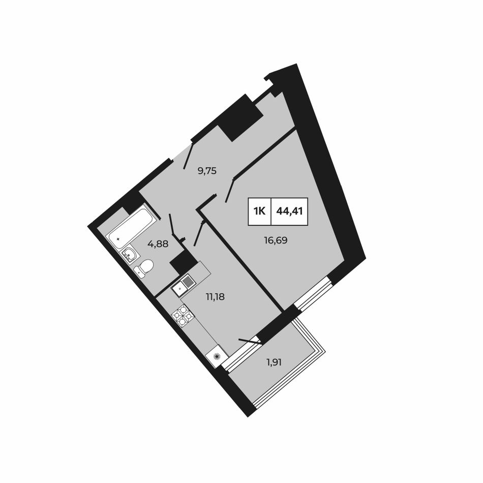 1-комнатная — 44,41 м² 18/30 эт. в Манхэттен 2.0