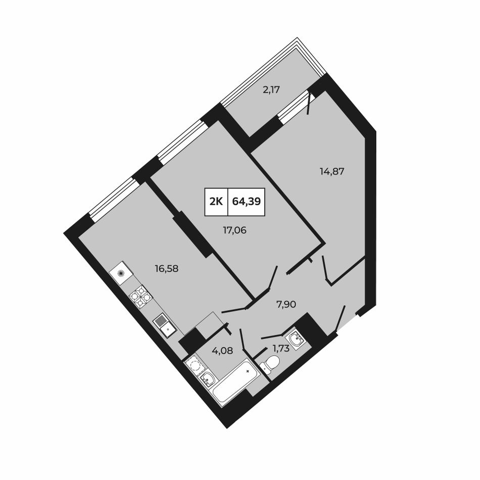 Общая площадь64,39 м²