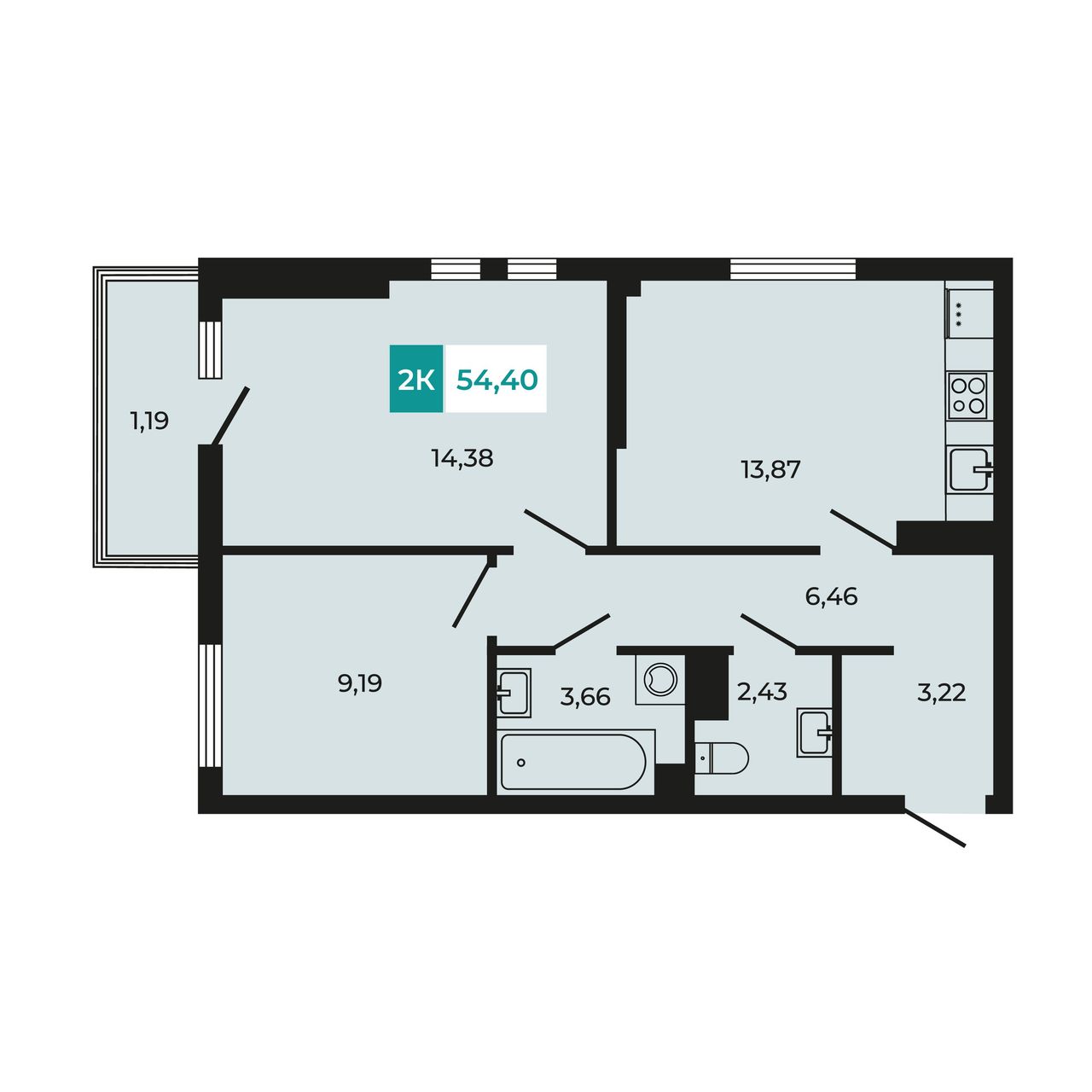 2-комнатная — 54,4 м² 5/8 эт. в Соседи