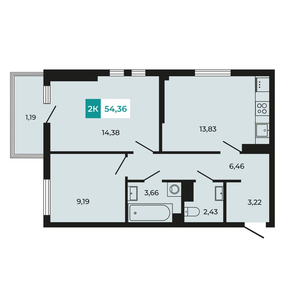 Общая площадь54,36 м²