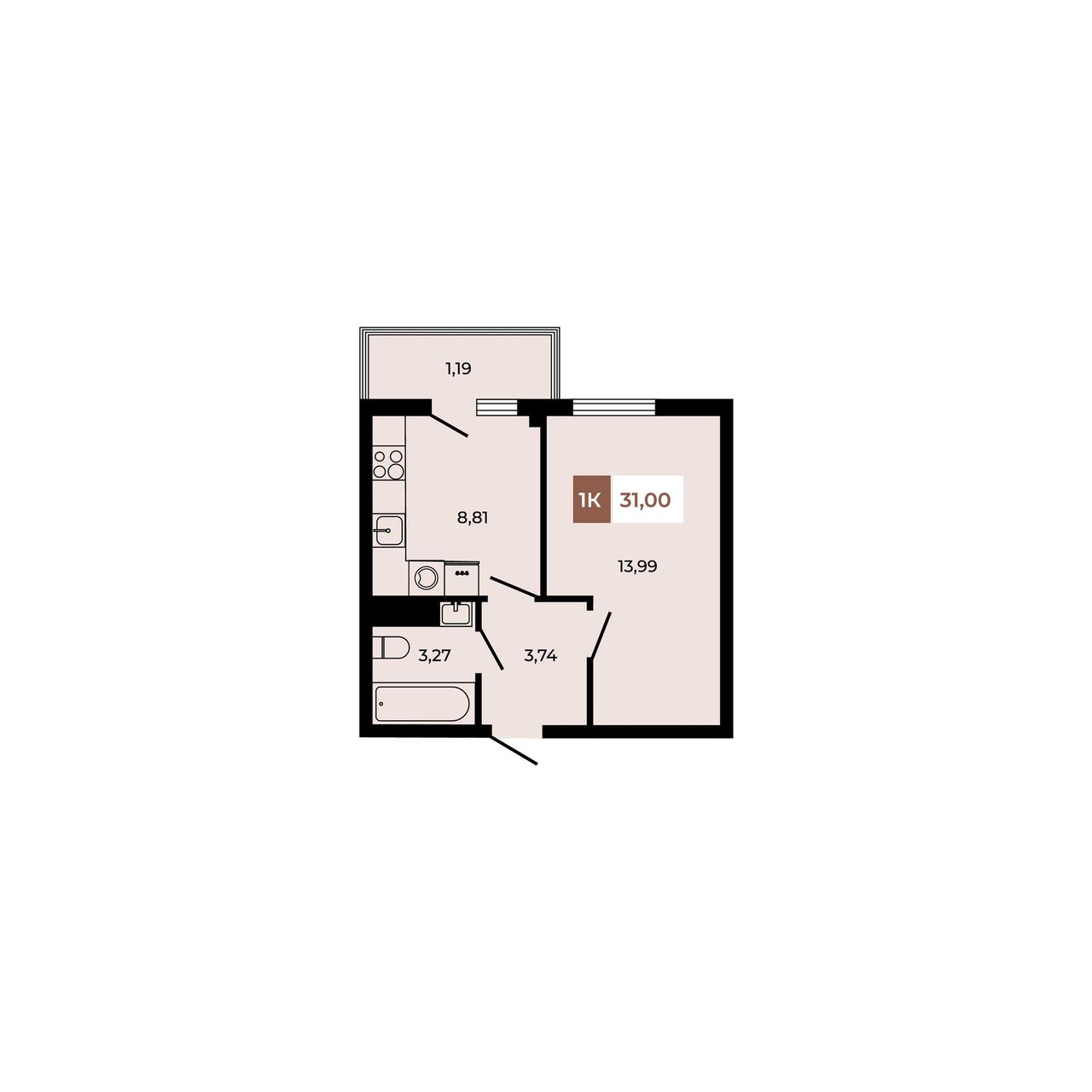 1-комнатная — 31 м² 6/8 эт. в Соседи