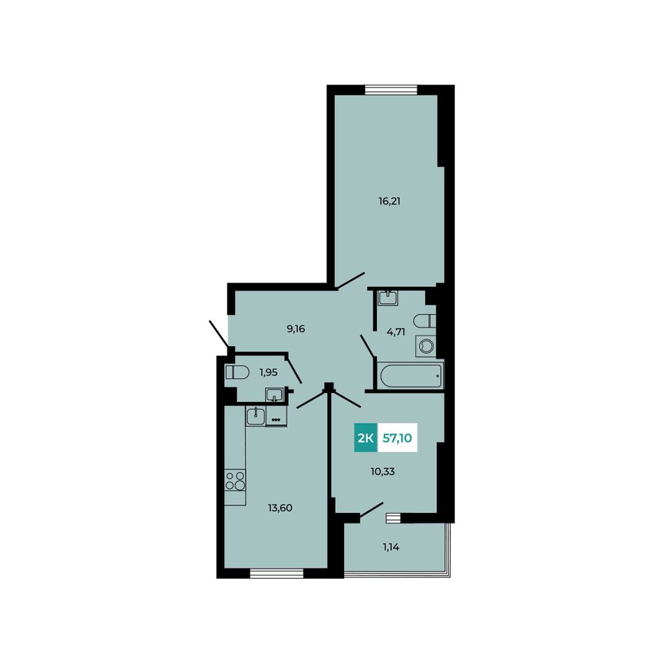 2-комнатная — 57,1 м² 1/8 эт. в Соседи
