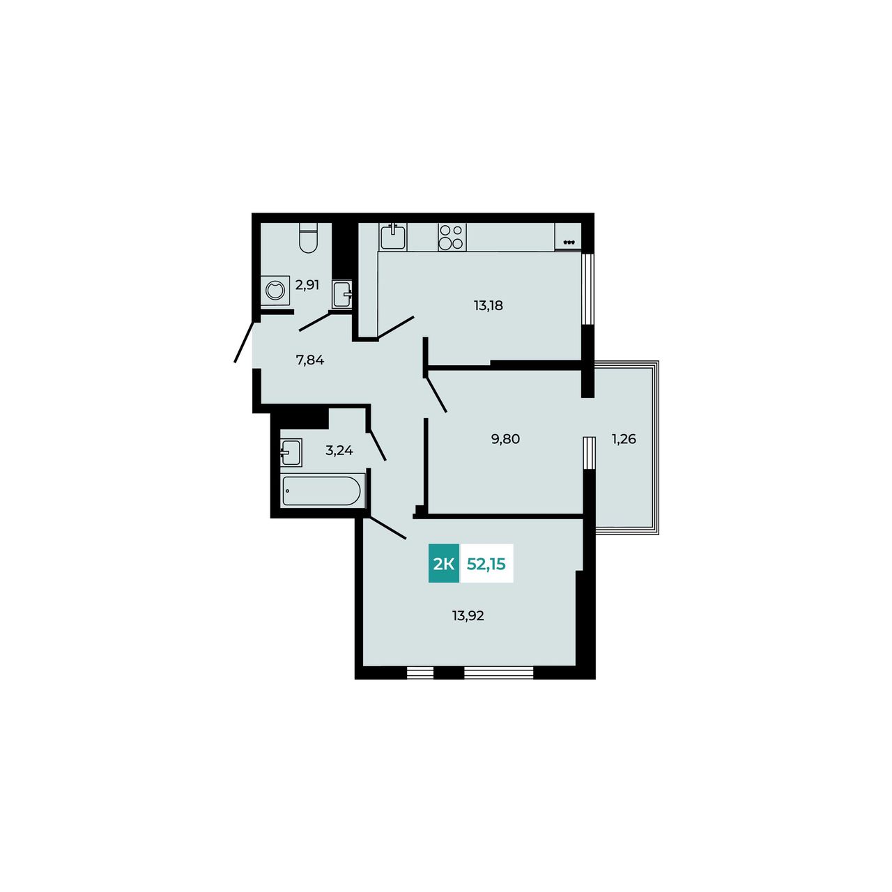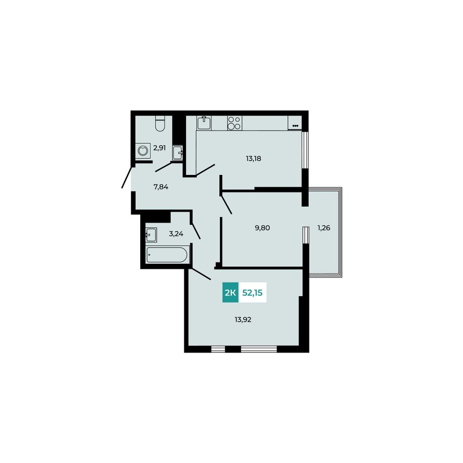 Общая площадь52,15 м²