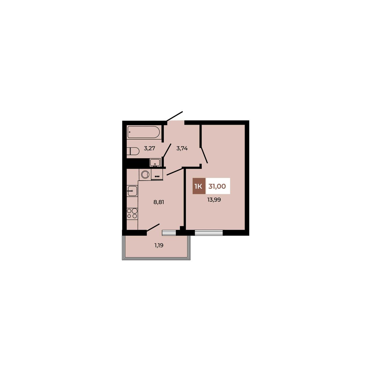 1-комнатная — 31 м² 2/8 эт. в Соседи