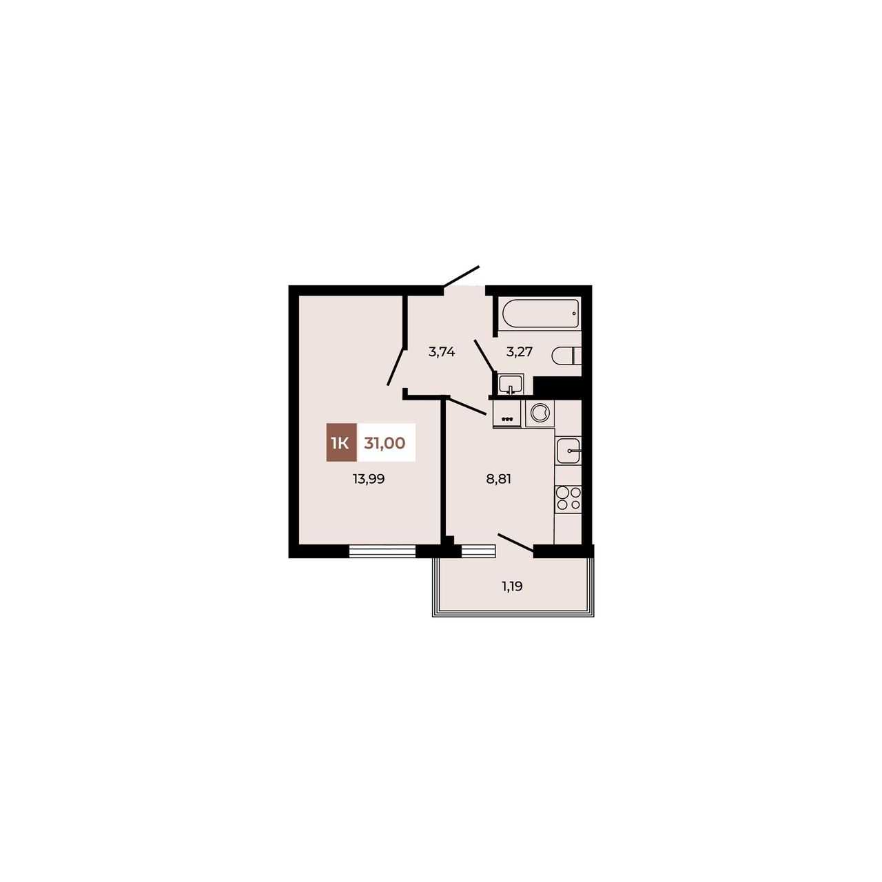 1-комнатная — 31 м² 5/8 эт. в Соседи