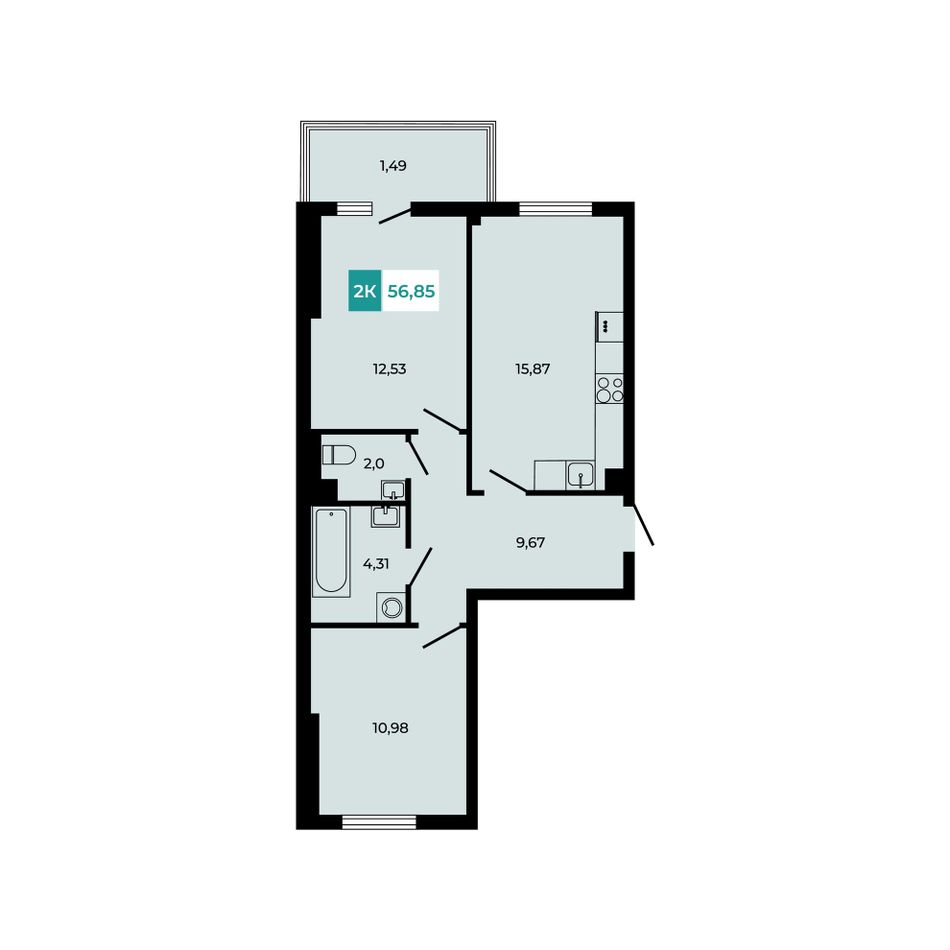 2-комнатная — 56,85 м² 1/8 эт. в Соседи