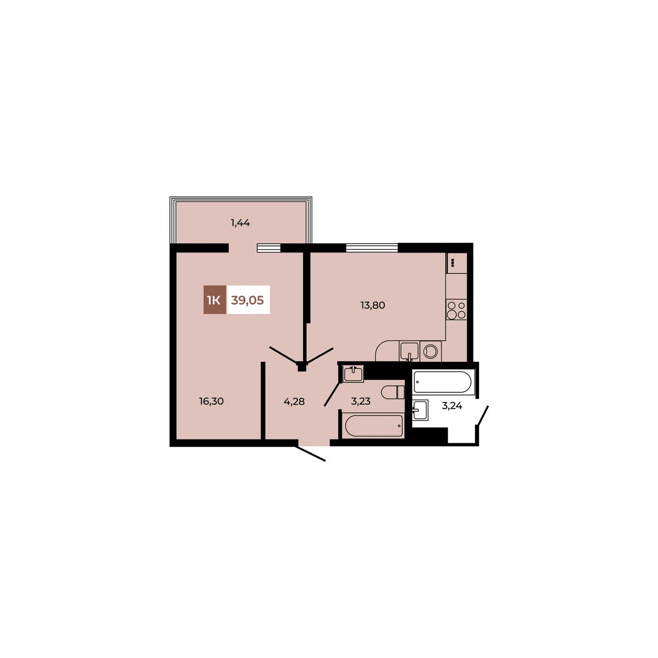 Общая площадь39,05 м²
