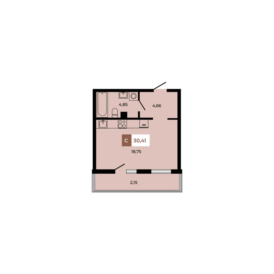 Студия — 30,41 м² 2/8 эт. в Соседи
