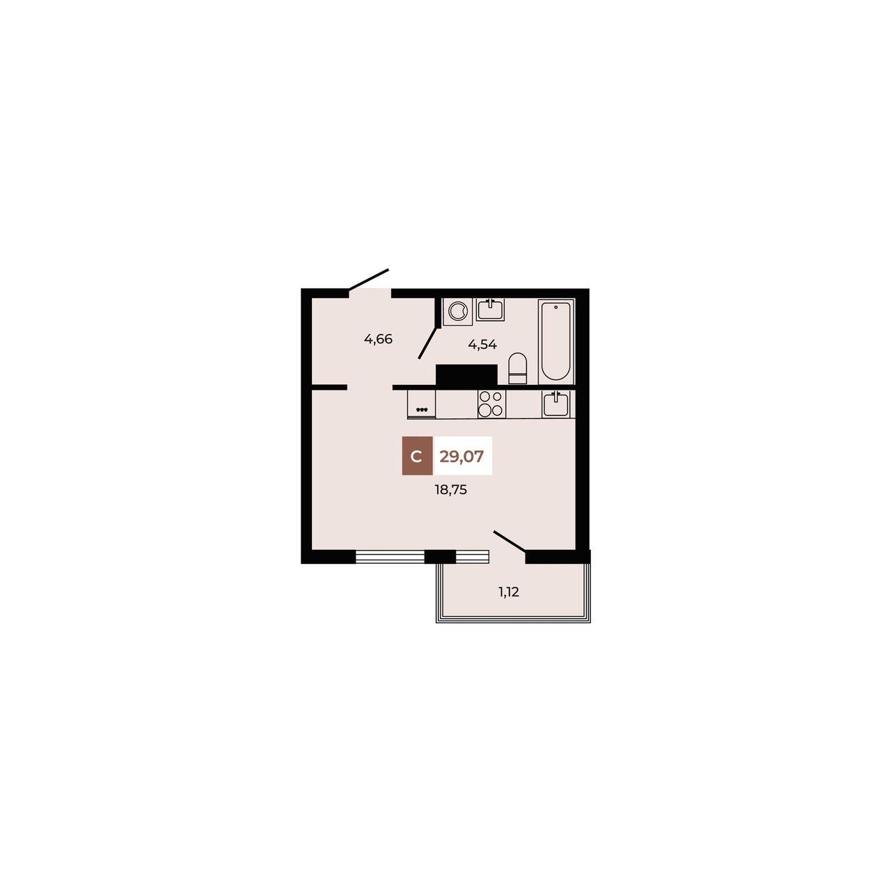 Общая площадь29,07 м²