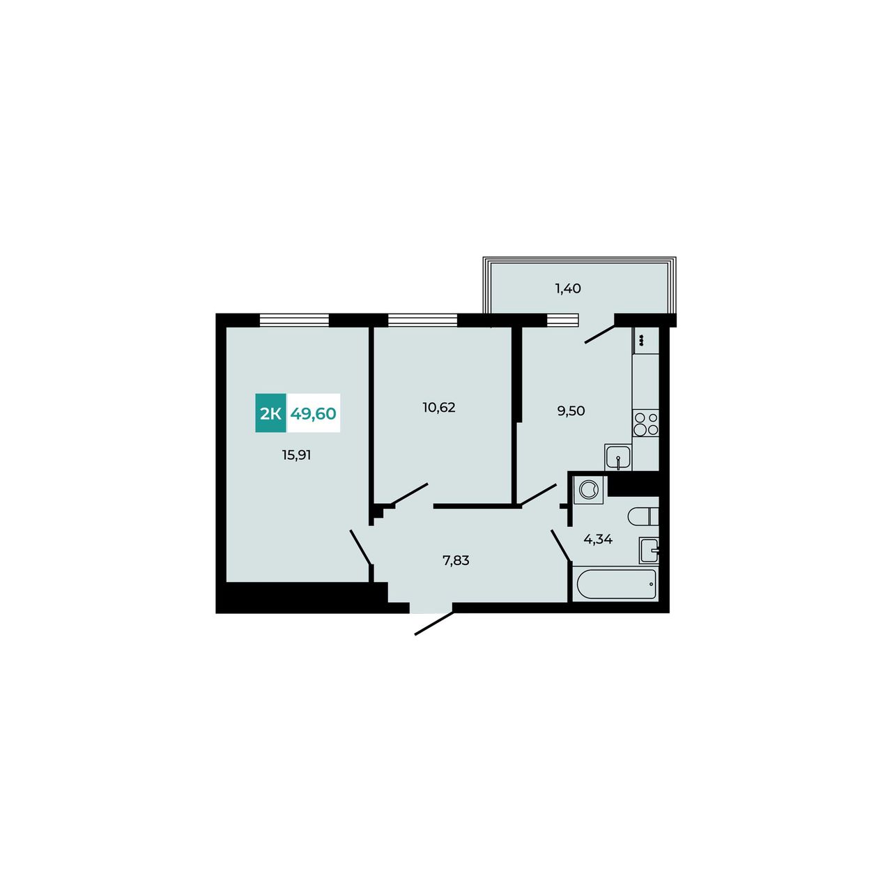 Общая площадь49,6 м²