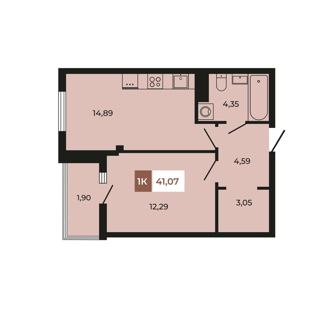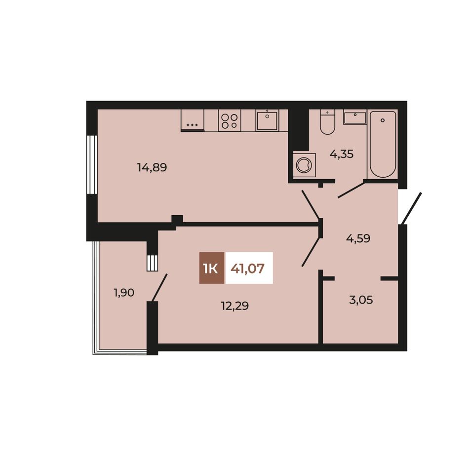 Общая площадь41,07 м²