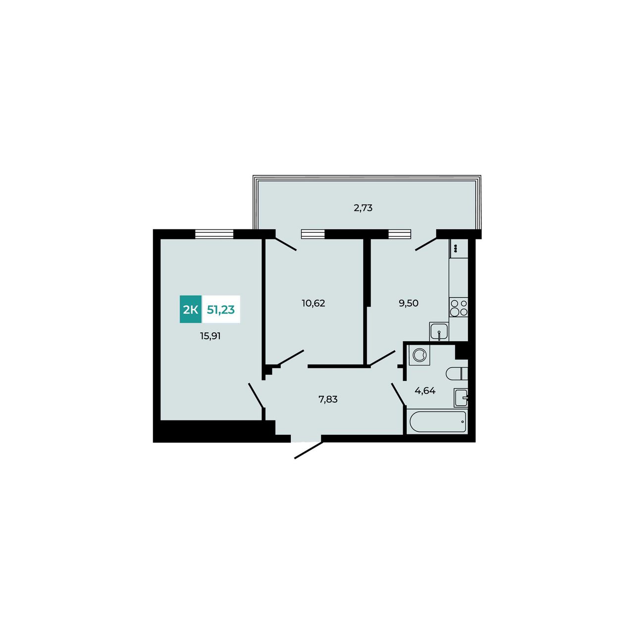 2-комнатная — 51,23 м² 1/8 эт. в Соседи