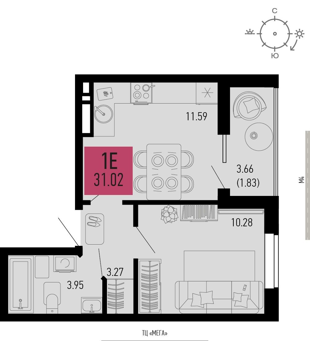 1-комнатная — 31,02 м² 16/18 эт. в Столицыно