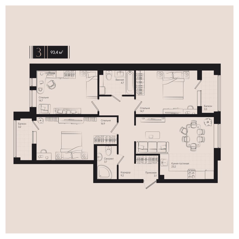 | 3-комн. | 79 - 93 м² | 13 - 17,2 млн ₽ |