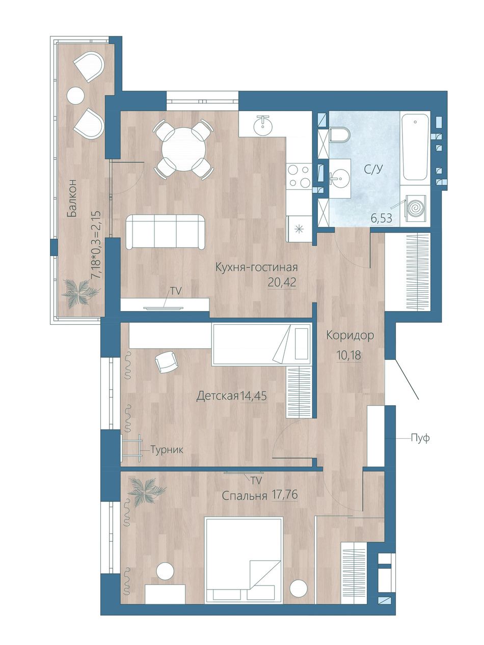 3-комнатная — 71,53 м² 3/15 эт. в Наследие