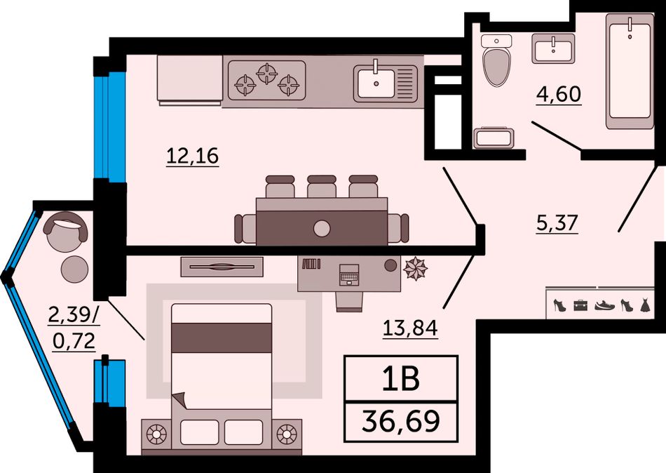 Общая площадь36,69 м²