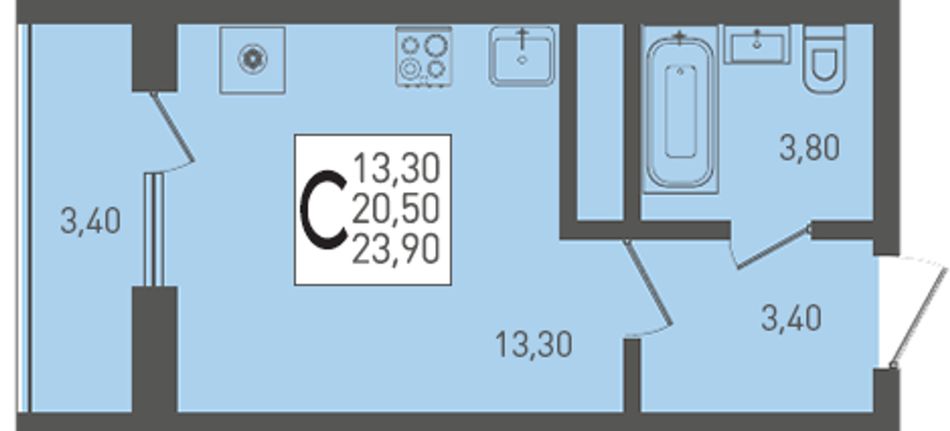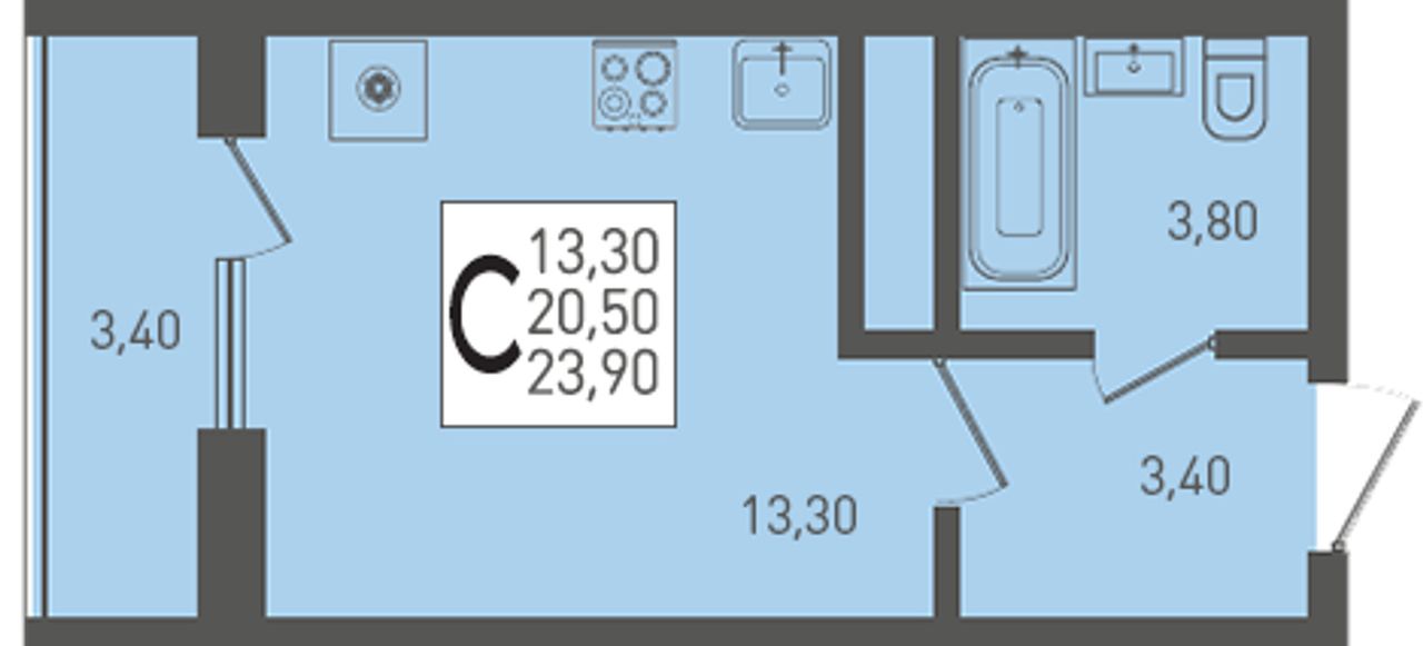 Студия — 23,9 м² 13/24 эт. в Огурцы