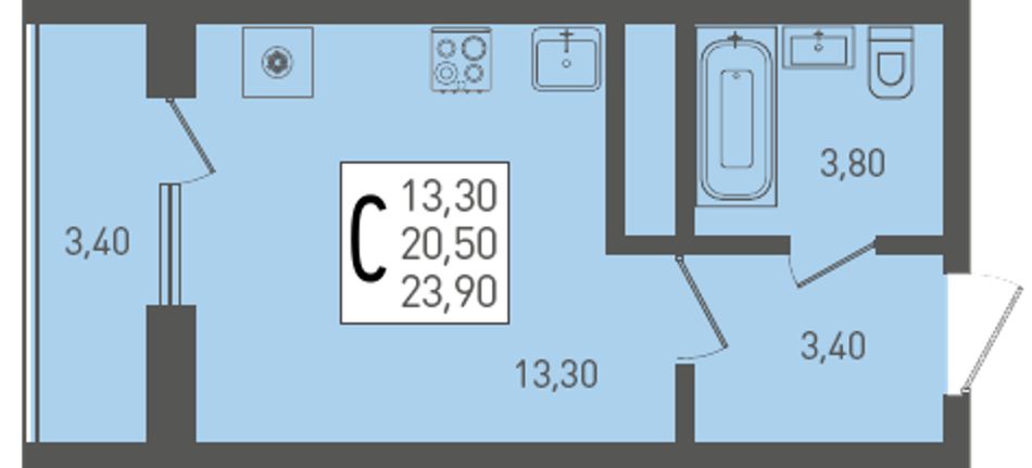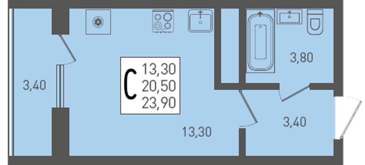| Студия | 26 - 42 м² | 3,5 - 7 млн ₽ |