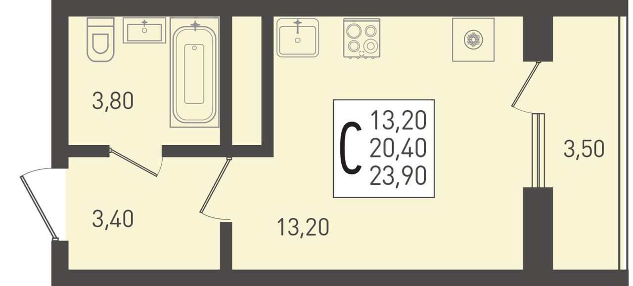 | Студия | 26 - 42 м² | 3,5 - 7 млн ₽ |