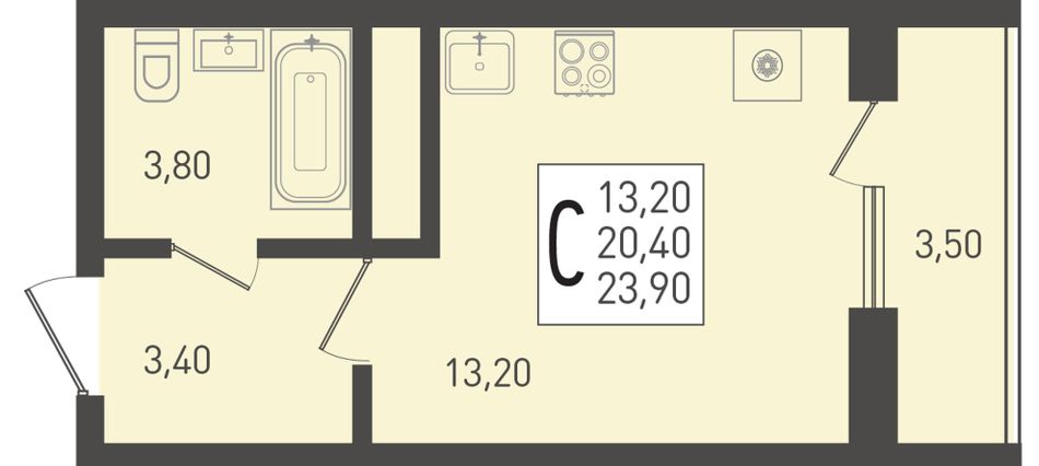 | Студия | 26 - 42 м² | 3,5 - 7 млн ₽ |