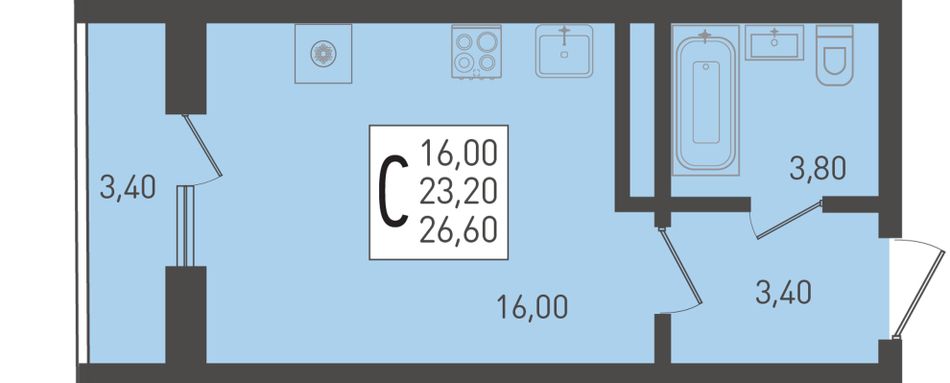 | Студия | 26 - 42 м² | 3,4 - 7 млн ₽ |