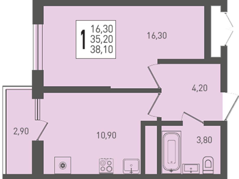 Общая площадь38,1 м²