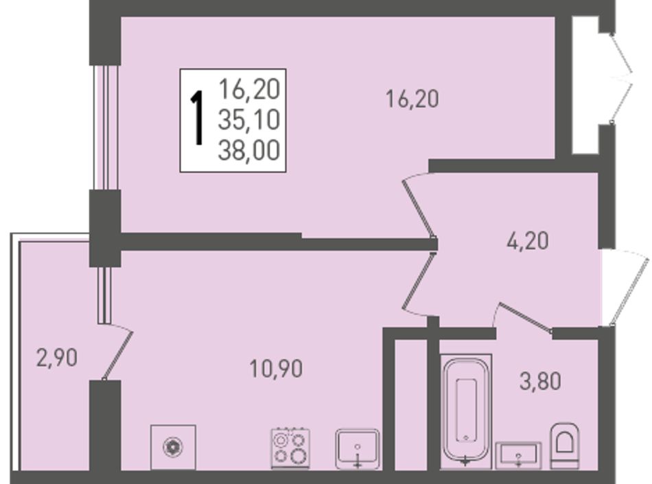 | Студия | 26 - 42 м² | 3,5 - 7 млн ₽ |