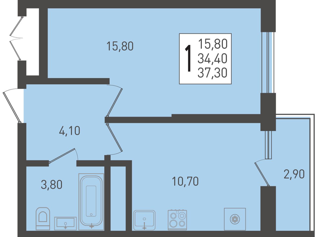 Общая площадь37,3 м²