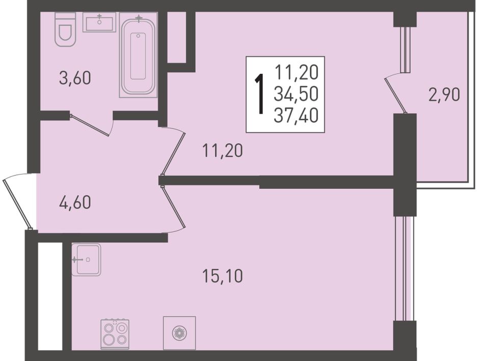 Общая площадь37,4 м²