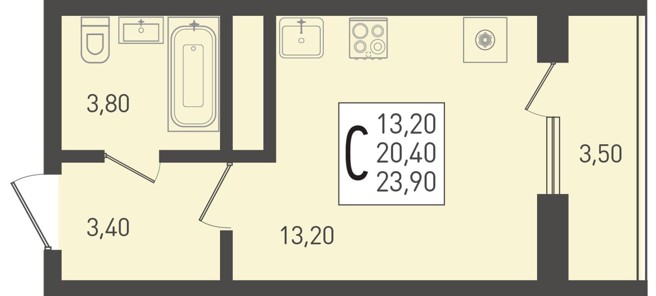 | Студия | 26 - 42 м² | 3,5 - 7 млн ₽ |