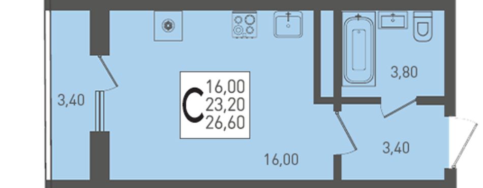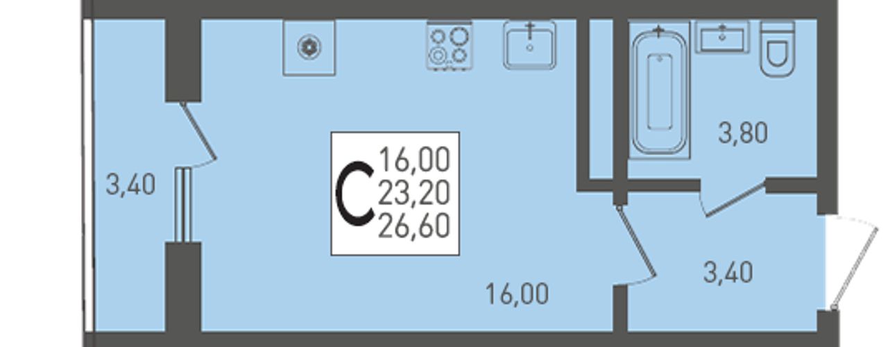Общая площадь26,6 м²