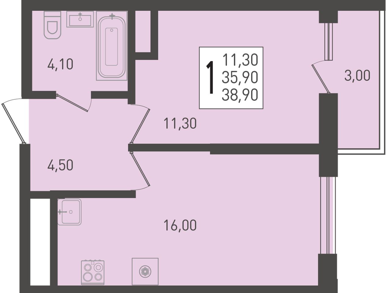 Общая площадь38,9 м²