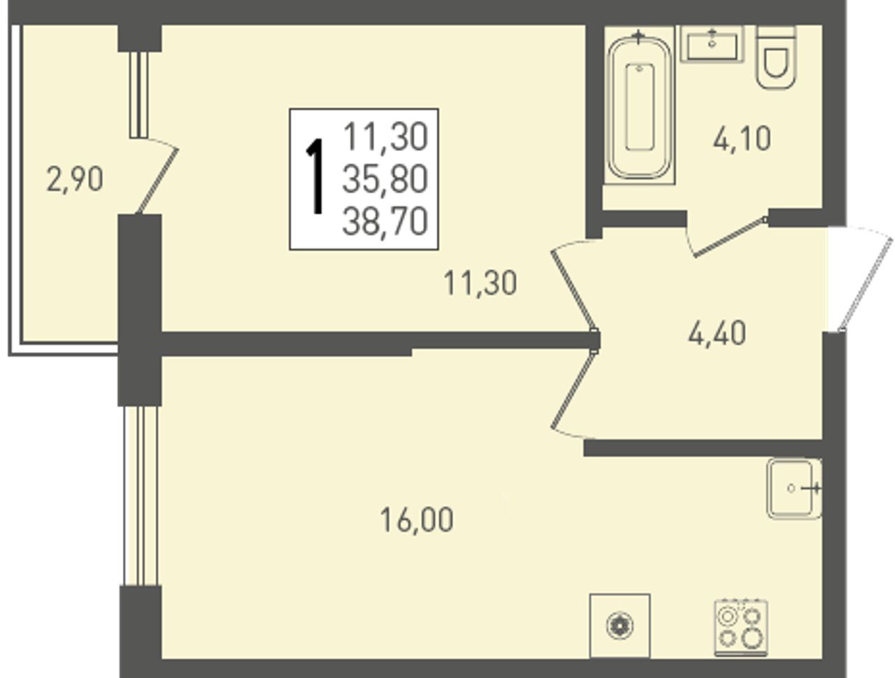 Общая площадь38,7 м²