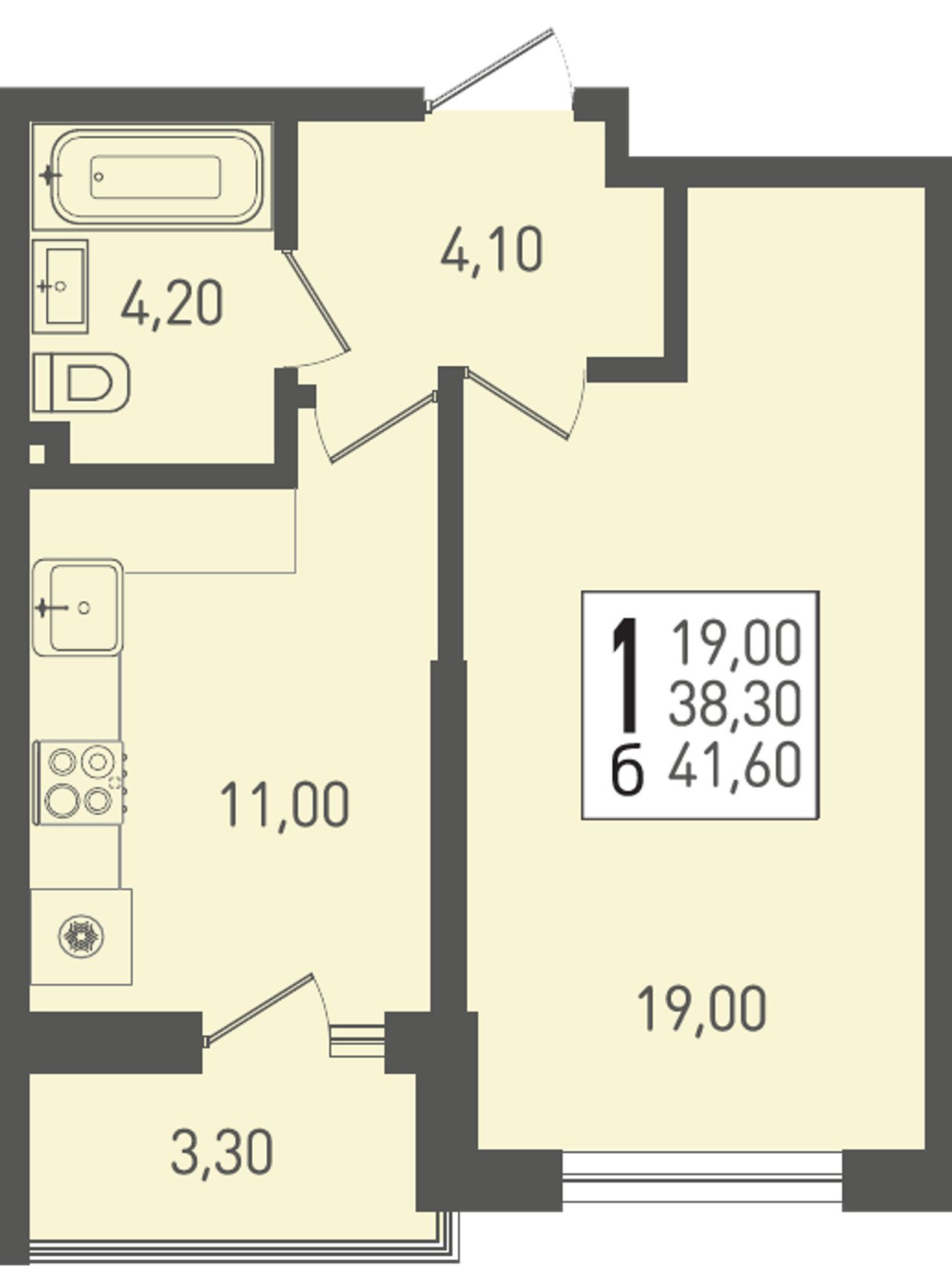 | 1-комн. | 38 - 47 м² | 3,9 - 4,6 млн ₽ |