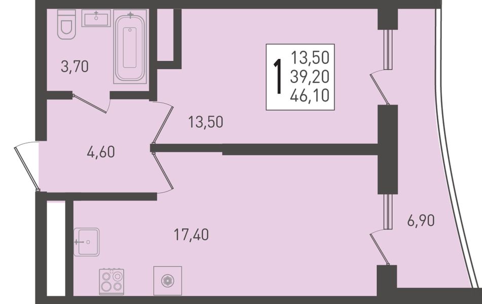 | 1-комн. | 38 - 47 м² | 3,9 - 4,6 млн ₽ |