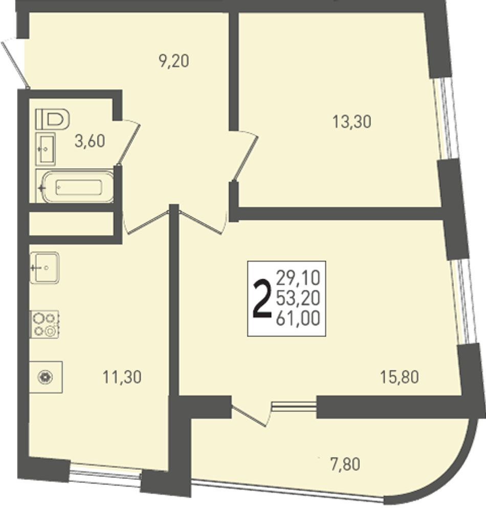 2-комнатная — 61 м² 24/24 эт. в Огурцы