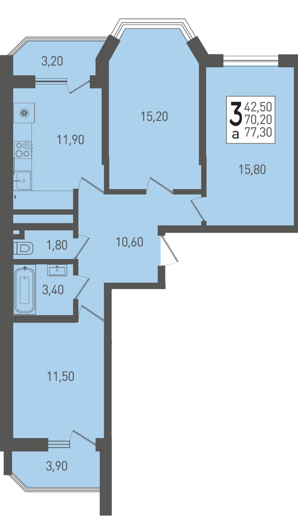 3-комнатная — 77,3 м² 14/22 эт. в Огурцы