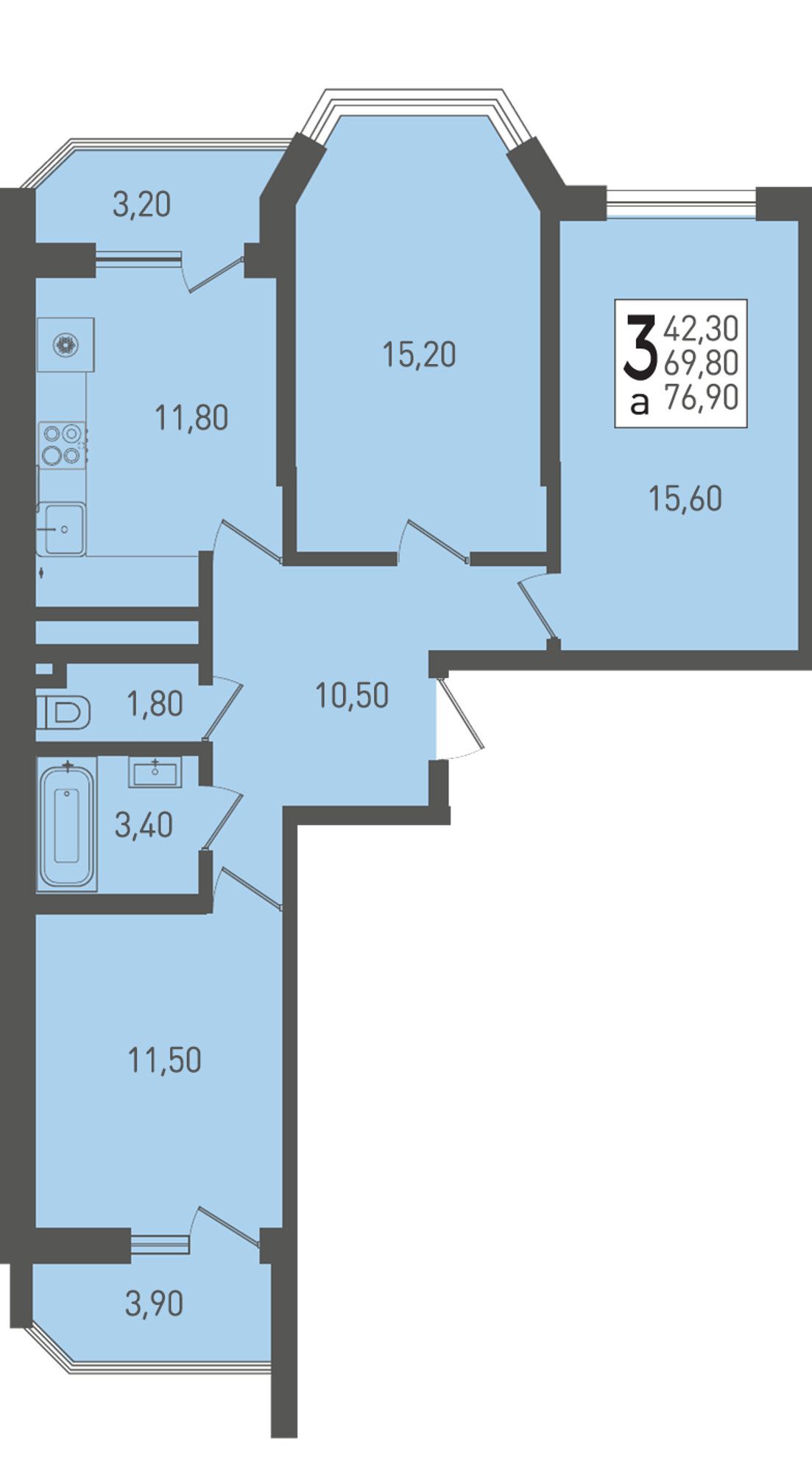 Общая площадь76,9 м²